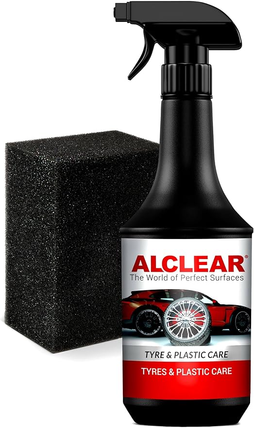 ALCLEAR 721RK Tire Shine 1000 ml, with application sponge, satin finish, UV protection, color refreshing, for tire sidewalls, plastic, door rubber, rubber care, car care, vehicle preparation.